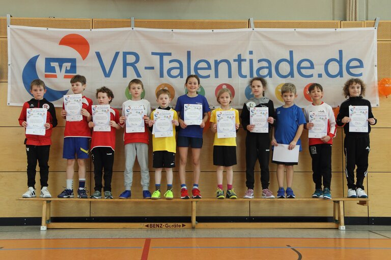 Nachdem die Punkte ausgewertet wurden, gab es eine Siegerehrung, bei der die 11 besten Kinder der Veranstaltung genannt wurden. Diese Kinder haben sich für die 2. Runde der Talentiade, den Bezirksentscheid, qualifiziert.