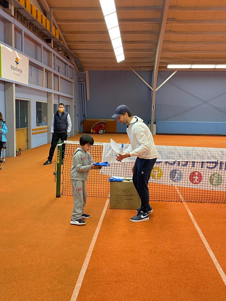 Am 08.01.22 fand der vierte Spieltag der VR Talentiade unserer jungen nachwuchs Talente in der Halle des TC BW Donaueschingen statt. Zeitgleich wurde bei dem Betz und Partner Cup um LK Punkte, ein spannendes und schön anzuschauendes Tennis gespielt. Es wurde wieder, von jung bis alt, mit vollem Einsatz der Schläger geschwungen. In der U 9 Mitcourt Kategorie konnte sich Adrian Ettwein vom TC Blau-Weiß Donaueschingen mit viel Können und Ehrgeiz den ersten Platz sichern. Der zweite Platz ging an Max Baur vom TC 1902 Überlingen, der knapp gegen Adrian Ettwein bei einem guten Match verlor. Die letzte Urkunde für Platz 3 erkämpfte sich das einzige Mädchen auf dem Siegertreppchen Cleo Koenders, die die Jungs alt aussehen ließ. Die beiden vierten Plätze teilten sich die beiden Nachbarn Emanuel Winkler und Maximilian Metz des TC Blau-Weiß Donaueschingen.