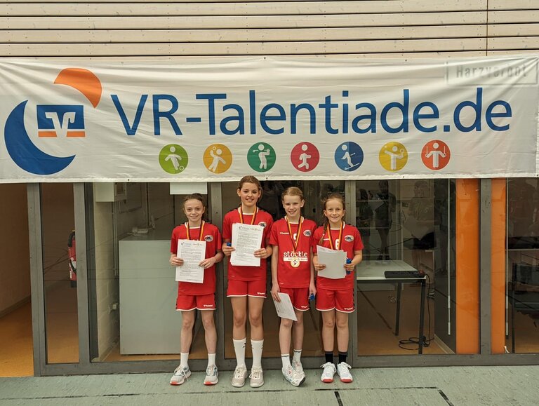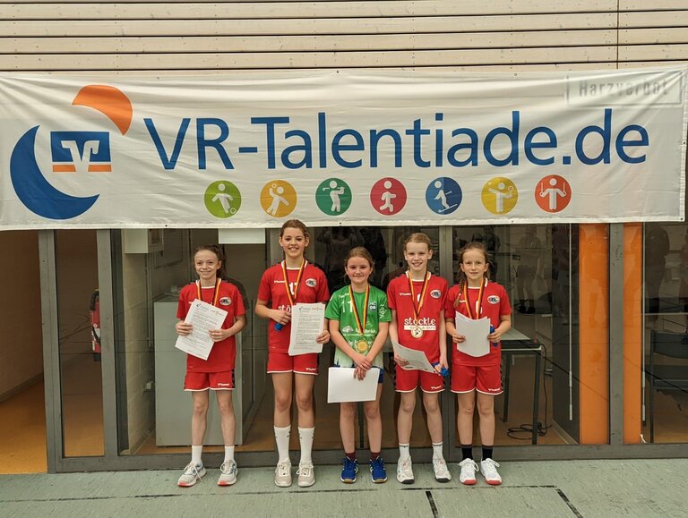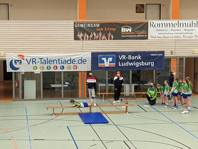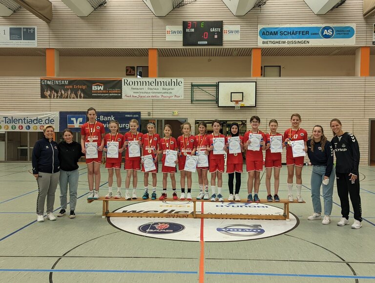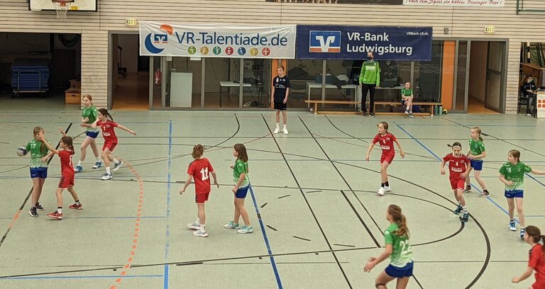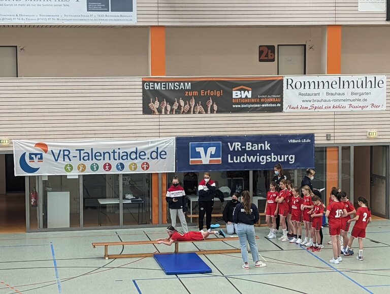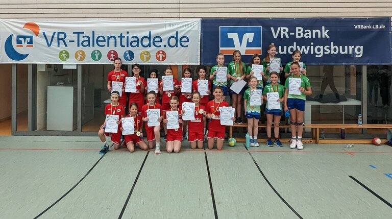 Am vergangenen Sonntag fand der letzte Spieltag der weibliche E1-Jugend in der Jahnhalle in Bissingen statt. Gegner waren die Mädels vom HC Oppenweiler-Backnang. Gleichzeitig war es auch eine Talentiadesichtung, bei der die Mädels ihr Können vor der Auswahltrainerin Nina beweisen konnten. Die SG-Nachwuchsmädels konnten sowohl bei der Koordination, als auch beim Spiel auf das ganze Feld überzeugen und mussten sich somit in der Saison nur einmal in der Koordination geschlagen geben. Alle anderen Vergleiche konnten sie (meist sogar recht deutlich) für sich entscheiden. Am Ende wurden dann alle Mädels geehrt und mit einem kleinen Geschenk, welches von der VR-Bank Ludwigsburg zur Verfügung gestellt wurde, bedacht. Außerdem wurde jeder auch die Medaille, welche vom Bezirk Enz-Murr zur Verfügung gestellt wurde, von der deutschen Nationalspielerin Xenia Smits persönlich umgehängt. An diesem Tag besonders in den Fokus der Auswahltrainerin gerückt waren vom Jahrgang 2011 die Mädels: Moya Orthwein, Sarah Gysin, Leni Baltzer und Linnea Peters. Diese vier Mädels dürfen sich auf die nächste Runde in der Talentiadesichtung Mitte Juli freuen. Wir möchten uns beim Handballverband Württemberg und besonders auch bei der VR-Bank Ludwigsburg für die tolle Zusammenarbeit und die Geschenke bedanken. Für alle Mädels des Jahrganges 2010 war es der letzte E-Jugendspieltag, bevor es in die nächste Altersgruppe geht.