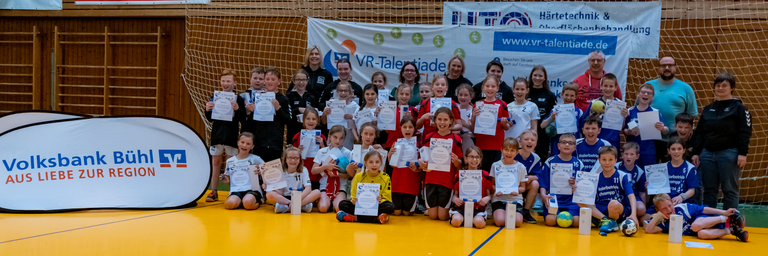 VR-Talentiade-Sichtung der SG JHA Baden am 30.04.2022 Bei der VR-Talentiade- Sichtung am 30.04.2022 in der Sporthalle Ottersweier durften über 40 Mädchen und Jungen im Alter von 10 Jahren und jünger zeigen, was in ihnen steckt. Die SG JHA Baden und die Volksbank Bühl organisierten zusammen ein Sportfest, bei dem besonders begabte Kinder für die Sportart Handball entdeckt werden sollten. Die Kinder durften sich bei verschiedenen Koordinationsübungen, beim 4+1-Handball und beim Aufsetzerball beweisen. Die Volksbanken Raiffeisenbanken in Württemberg haben das Konzept im Jahre 2001 zusammen mit den Sportfachverbänden der Sportarten Fußball, Handball, Leichtathletik, Ski, Tennis und Turnen aufgestellt. Im Jahr 2009 stieß dann noch die Sportart Golf als 7. Sportart hinzu. Seit 2010 finden die VR-Talentiade-Veranstaltungen auch in den benannten Sportarten in Baden und Südbaden und somit in ganz Baden Württemberg statt. Im 21. Jahr der Kooperation begann die Veranstaltungsreihe nun mit der 1. Runde (VR-Talentiade-Sichtung). Alle Teilnehmer des Talenttages in Ottersweier bekamen bei der Siegerehrung Geschenke und Urkunden überreicht und die Besten können sich für die 2. Runde, den Bezirksentscheid, qualifizieren. Der Verein bedankt sich bei allen ehrenamtlichen Helferinnen und Helfer, die diesen Tag ermöglicht haben. Nach dieser 2. Runde findet dann jedes Jahr die letzte Runde, der Verbandsentscheid, statt. Daran dürfen aus den vier Handballbezirken jeweils 16 Kinder teilnehmen. Jede Sportart führt diese Wettbewerbsstufe an einem zentralen Ort in Baden-Württemberg durch. Die zwölf besten Sportler des jeweiligen Sportverbandes werden in das VR-Talentiade-Team berufen und machen bei den VR-Talentiade-Team-Tagen mit. Das Team darf die große Welt des Sports beim Training mit Stars oder bei einem internationalen Sportevent kennenlernen und wird anschließend in ein Betreuungskonzept eingebunden.